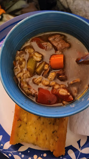 My husband really loves beef stew with barley and it has been forever since I last made it. So, while I was out shopping last week, I found some beautiful beef tips and decided it was time to make it again. Now, I will admit, I love beef stew, but I am not usually the best at making it. It usually comes out too thin, like a soup instead of stew. But this time I found a different recipe that I thought might help me do it right, and BOY was I right. Now, I will reference the recipe here, but I really only took the base out of the recipe. The rest is all me and what I prefer in my stew.